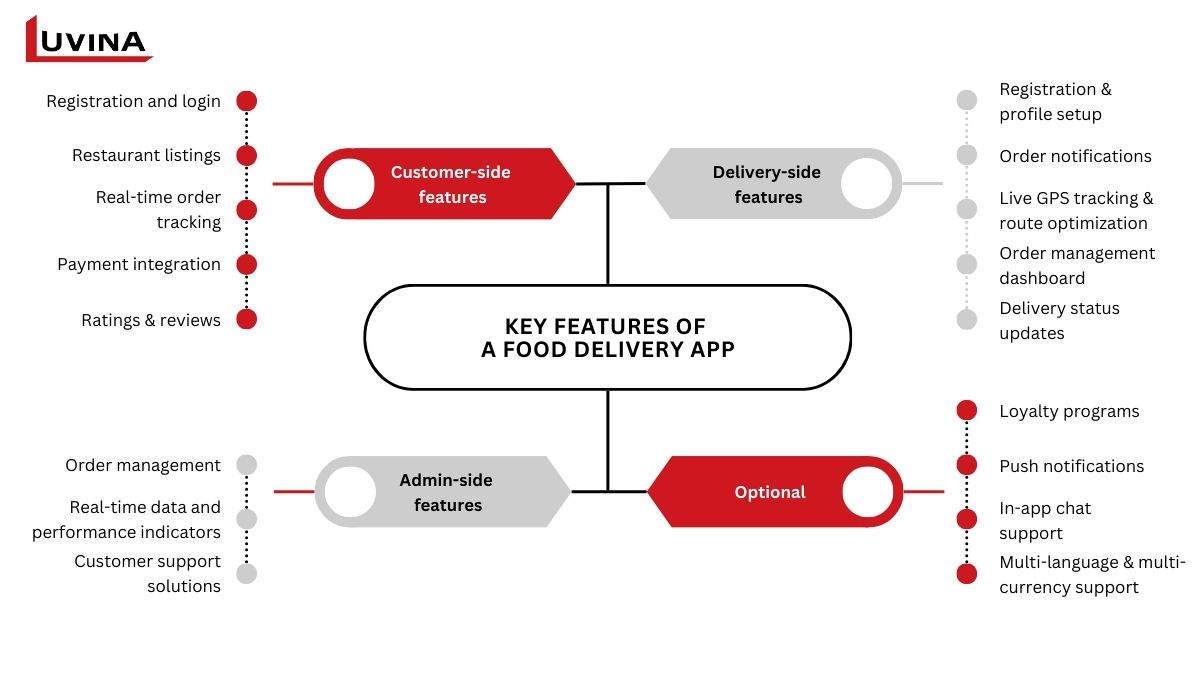 Recognized for providing innovative, user-centric solutions designed for the rapidly changing needs of the on-demand delivery sector, Luvina Software has emerged as a standout food delivery app development company. Drawing on a solid background in mobile development and in-depth knowledge of Industry 4.0 technologies, Luvina develops bespoke food delivery applications that provide seamless, user-friendly experiences across platforms.