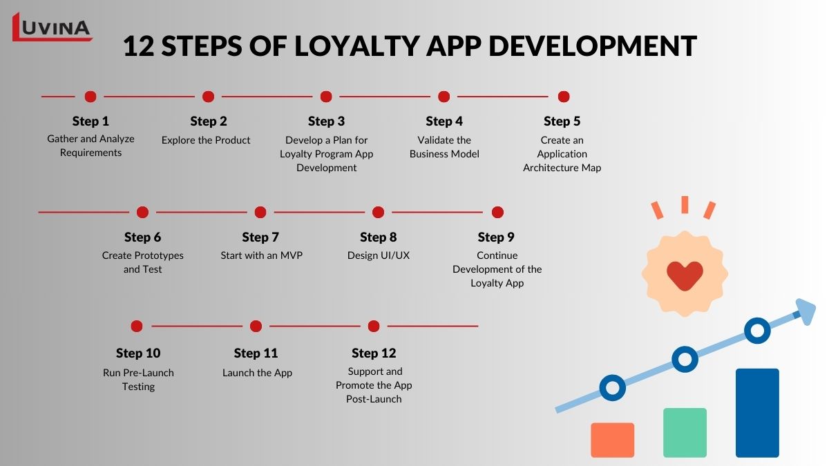 To develop a Customer Loyalty Program from A to Z, the first thing you should consider is naming your app. The name should be short, catchy, and ideally include the brand name. Once you have chosen the app name, you can begin the preparation and loyalty app development process through the following 12 steps: