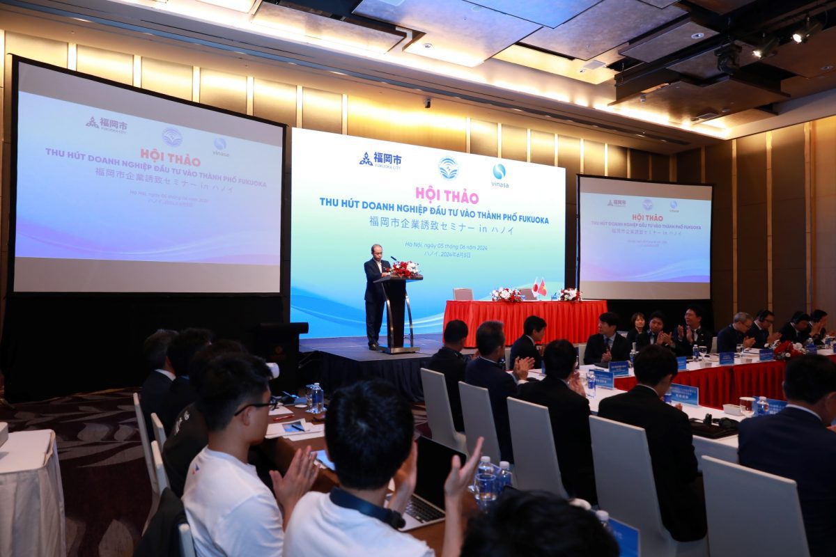 Fukuoka City, in collaboration with the Ministry of Information and Communications of Vietnam and VINASA, organized a seminar to attract businesses to invest in Fukuoka. This was an incredible opportunity to explore the charm and potential of Fukuoka through presentations by the Mayor of Fukuoka, Mr. Soichiro Takashima, and testimonials from Vietnamese businesses already investing there.