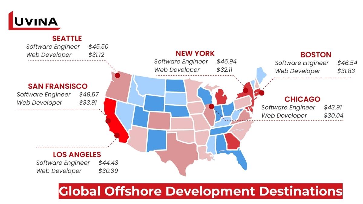 Now, let’s take a closer look at offshore software development rates in some popular offshore destinations center: