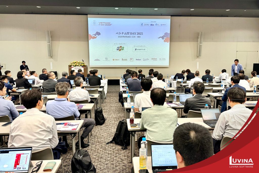 Ngày 28/8/2025, Luvina Software đã chính thức góp mặt tại Vietnam IT Day 2025 diễn ra tại Tokyo. Đây là sự kiện thường niên do VINASA phối hợp cùng JISA, JETRO, VJC và VADX tổ chức, dưới sự bảo trợ của Bộ Khoa học & Công nghệ Việt Nam, nhằm thúc đẩy hợp tác công nghệ và chuyển đổi số giữa Việt Nam và Nhật Bản.