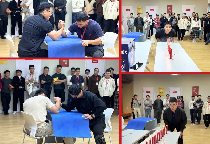 Tại Hà Nội, sự kiện diễn ra với chuỗi minigame vận động Men’s Day Challenge: Đấu lực – Rinh quà, thử thách sức mạnh, sức bền của mỗi người tham gia. Không khí thi đấu hào hứng giúp tăng sự kết nối giữa các phòng ban và mang đến phần thưởng xứng đáng cho những cá nhân vượt qua thử thách.