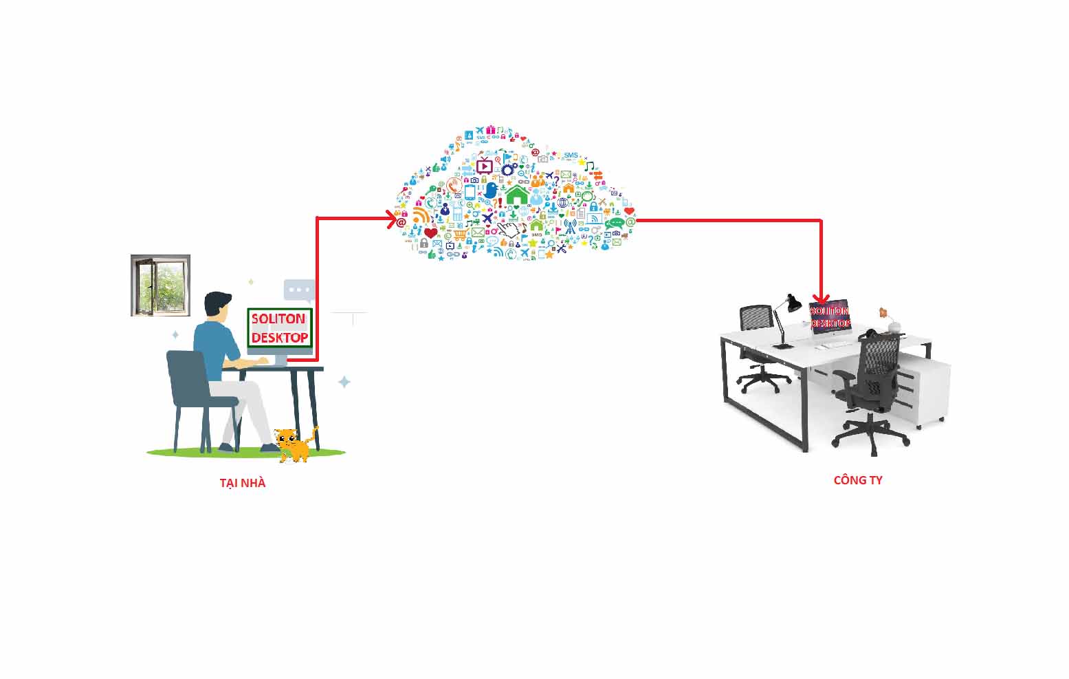 Sử dụng dịch vụ của chúng tôi, công ty bạn sẽ nói KHÔNG với gián đoạn, sẽ bình thản với CÁCH LY, sẽ an tâm với CHẤT LƯỢNG mà sản phẩm mang lại. Sản phẩm "Soliton SecureDesktop" là phần mềm Work From Home - Làm việc tại nhà. SOLITON đạt giải thưởng Grand Prize trong hạng mục Security tại Interop Tokyo 2018. Sản phẩm đã được hơn 2300 doanh nghiệp sử dụng; hơn 700.000 người tin dùng tại đất nước mặt trời mọc.